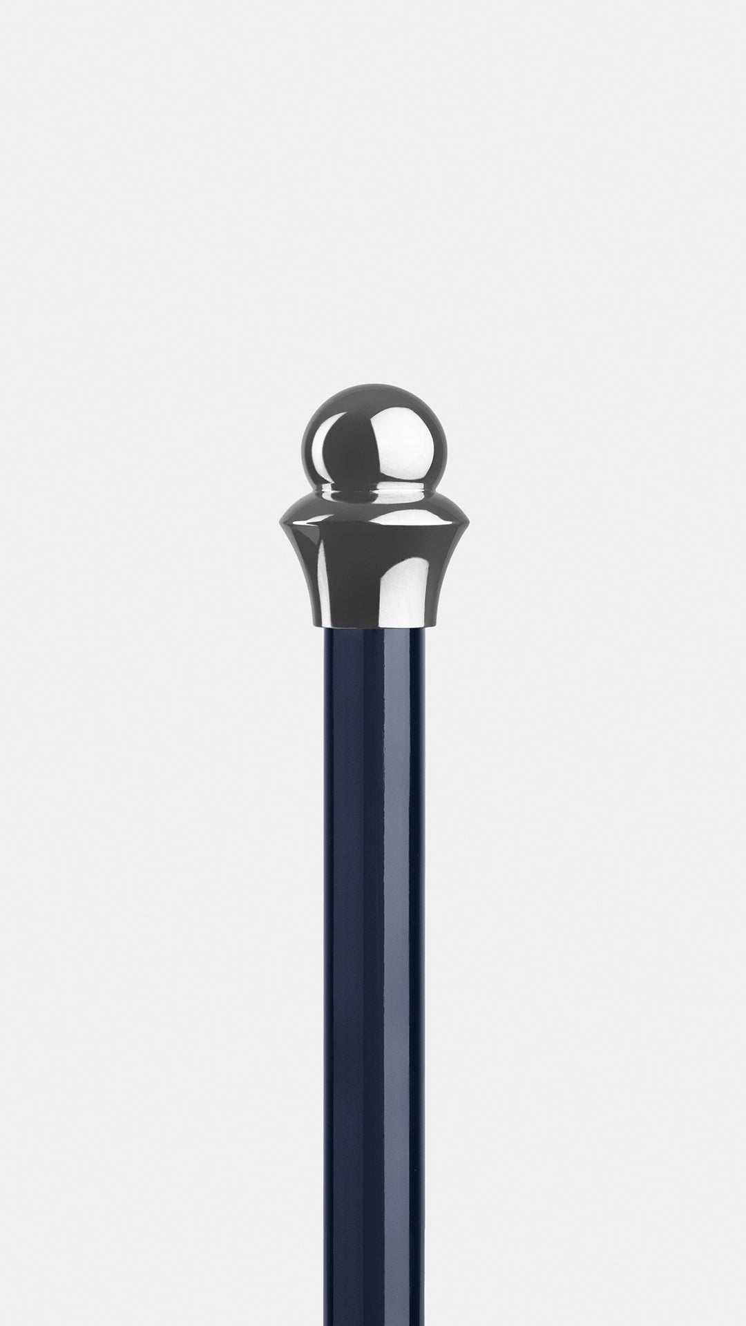 Andrea Versali 2026 formal walking stick with polished metal handle and lacquered shaft, available in two colors: black or blue. The minimalist and elegant design makes it an iconic accessory, capable of completing the groom's look with sophistication. The balance between clean lines and fine finishes expresses the quintessential Versali style.