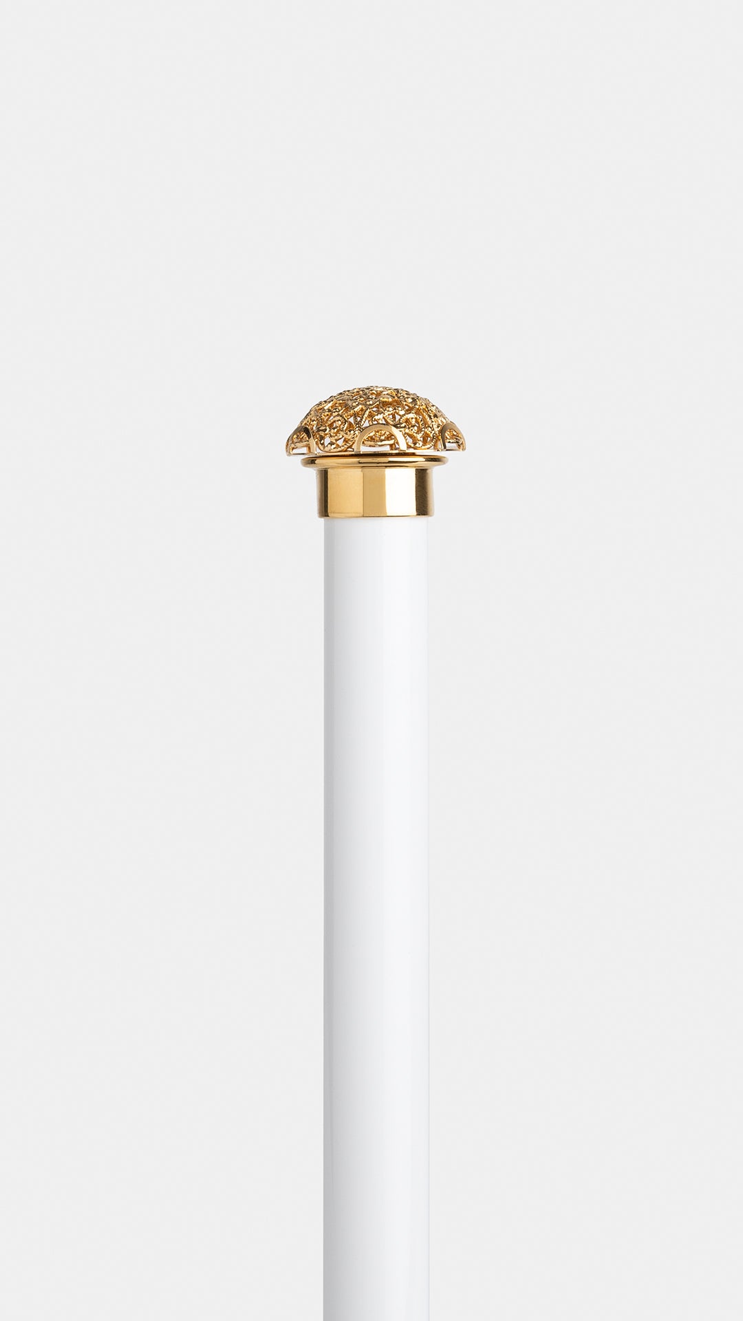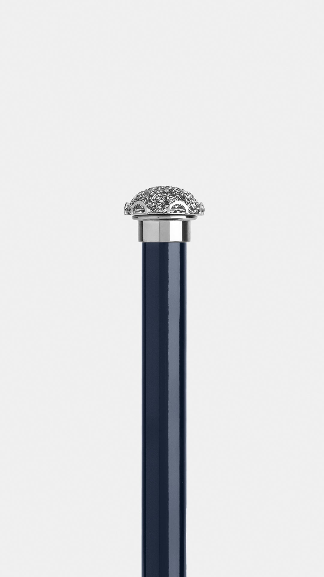 Bastone da cerimonia Andrea Versali 2026 con impugnatura cupolata decorata e fusto laccato disponibile in tre varianti: bianco e oro, blu e argento, nero e canna di fucile. Ogni modello è realizzato con finiture pregiate e design esclusivo, pensato per esaltare lo stile dello sposo e completare con eleganza il look cerimonia. Un simbolo di raffinatezza e personalità , firmato Andrea Versali.