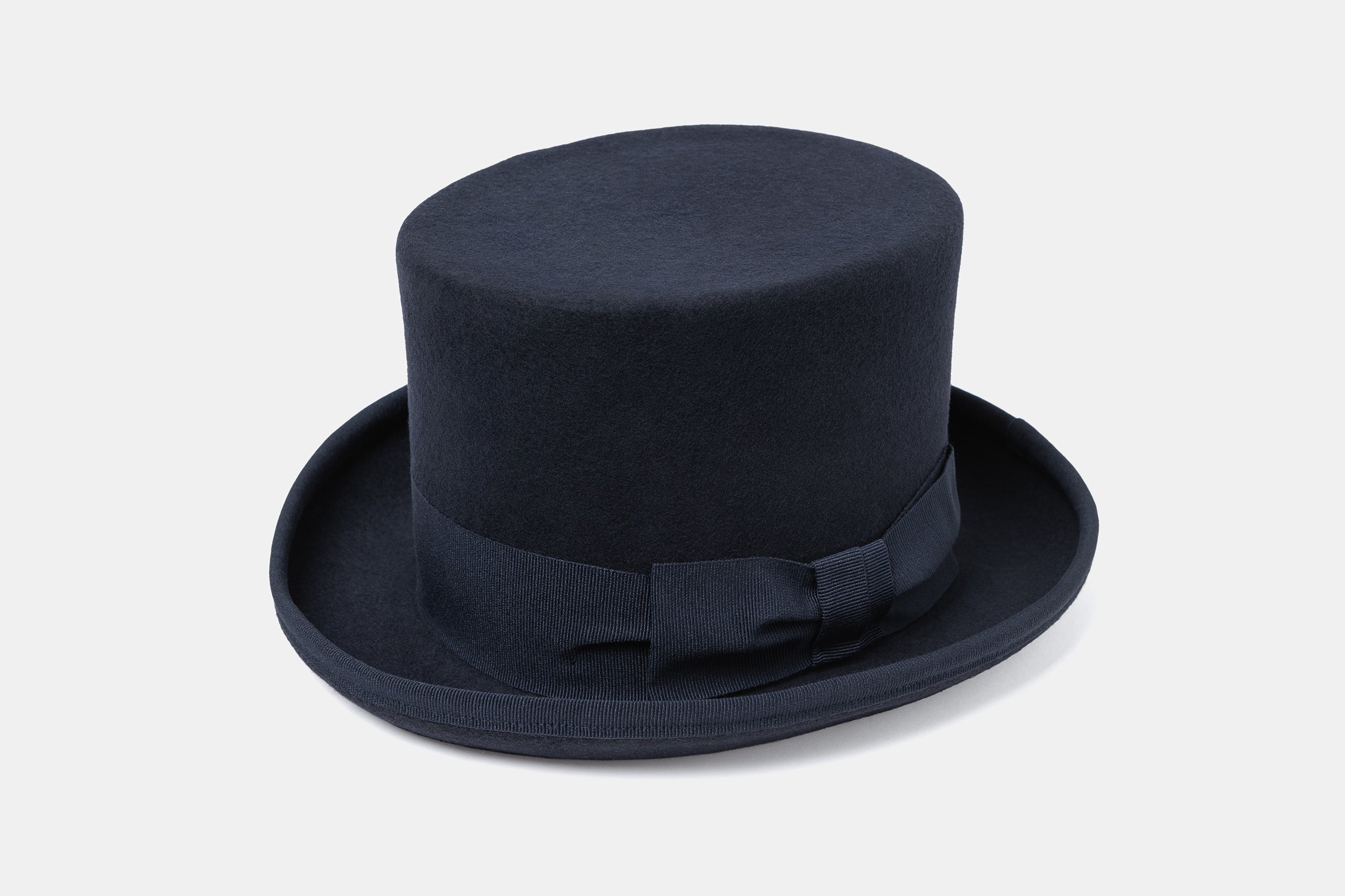 Cilindro Andrea Versali 2026 realizzato in feltro blu notte, con fascia tono su tono e fiocco in gros-grain. Essenziale e raffinato, rappresenta un’icona di eleganza maschile reinterpretata in chiave moderna. Perfetto per completare gli abiti da cerimonia con uno stile deciso e senza tempo.